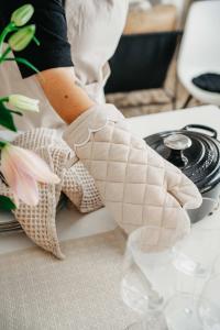 Gör fint i köket med nya grytlappar, grillvantar och förkläden.