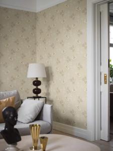 Tapet Sophia, Swedish Grace, Ginkoblad, greige och beige med guldskimmer