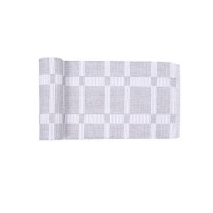 Stl. 15x140 cm. Vävd löpare ALBERT, rutmönstrad, tillverkad av återvunnet material, 80% bomull, 20% polyester här i färgerna ljusgrå och vitt.