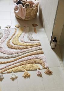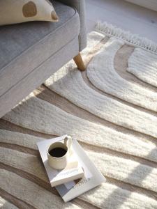 Håll ihop färgskalan med en matchande matta. Har du valt ett för övrigt enfärgat material på dina textilier kan det vara häftigt att spetsa till det med en mönstrad matta.