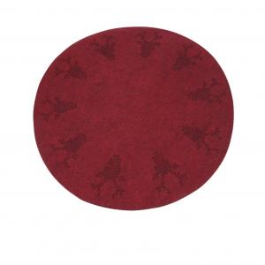 Stl. 100 cm Ø. Deer, rund julgransmatta i rött med renhuvuden i korsstygnslikande dekor. Finns även i grått. 100% polyester
