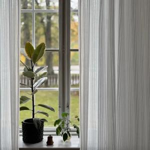 Gardinlängd LOTTA, tunn randig linnegardin i offwhite och linne