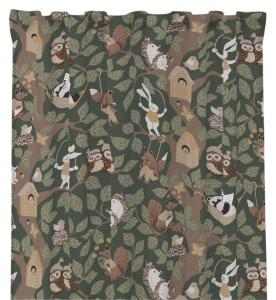 Stl. 2-pack 120x240 cm, Färdigsydda barngardiner SKOGSLIV med ekorrar, harar, igelkottar, grävlingar och ugglor som leker i träden.