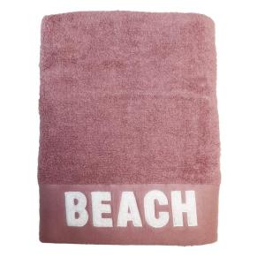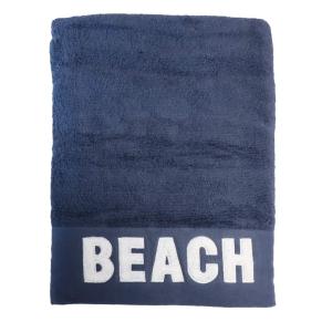 Stl. 80x160 cm, Enfärgat badlakan STRAND i mjuk tjock velour med text Beach i nederkanten. 450 gsm
