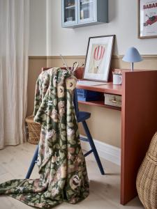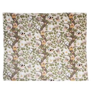 Stl. 130x150 cm, Mysig pläd SKOGSLIV för barn med ekorrar, harar, igelkottar, grävlingar och ugglor som leker i träden.