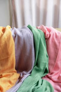 Stl. 50x250 cm. Belford en färdigsydd multibandskappa med vackert mönster i form av rosa blad från Ginkgo biloba.