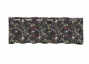 Gardinkappa COLIN stl. 50x250 cm, bladkvistar i plommon och grågrönt på svart botten.