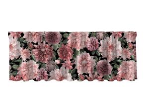 Gardinkappa Flowers, blommönster Dahlia, med multiband. Stl. 50x250 cm, Svart/rosa