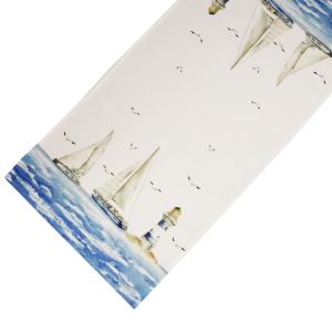 Stl. 40x85 cm, Löpare SMÖGEN i slub kvalité med båtar, fyrar och hav i digitaltryck. Lättplacerad löpare med havsmotiv.