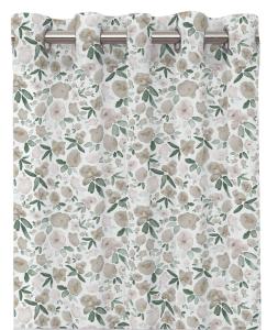 Stl. 2x140x240 cm, Öljettlängd SAGA med vackra blommor, fållade långsidor, overlock nedtill, upphängning öljetter.