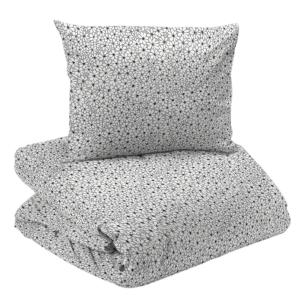 Bäddset FRIDOLINA översållat med små vita blommor på grå bottenfärg