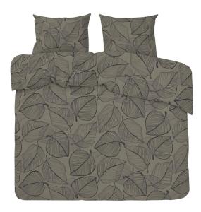 Bäddset HAGE 2-dels, blad och blommor, Stl.150x210cm, 50x60cm, grå, beige