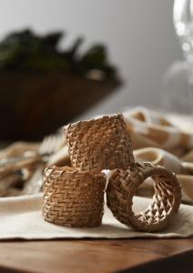 Stl. 4 cm Ø, 5 cm höjd. Rustika servettringen Ringo i flätad vattenhyacint. Förhöjer dukningen och passar alla typer av servetter. Färg natur.