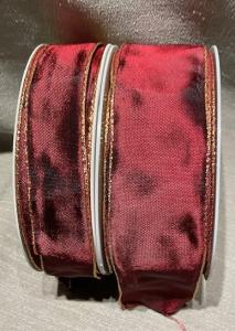 Stl: 25mm och 40mm. Textil band för dekoration i en härligt mörkröd färg med ståltrådskant i guld som gör att du lätt kan forma rosetter eller annat.