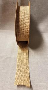 Juteband i två bredder, 5 cm och 3,8 cm. 75% jute, 25% nylon. För dekoration i färgen natur.