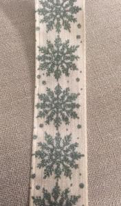 Textilband, linnefärgad med tryckta gröna snöflingor, ståltrådskant