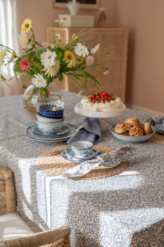 Denna klassiska småblommiga duk är elegant och stilfull för en snygg bordsdukning med sin tidlösa design. Dessutom så kan du använda den både ute och inne.