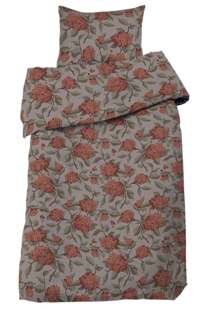 Bäddset CASIMIR med stora rostfärgade Hortensior på linnefärgad botten