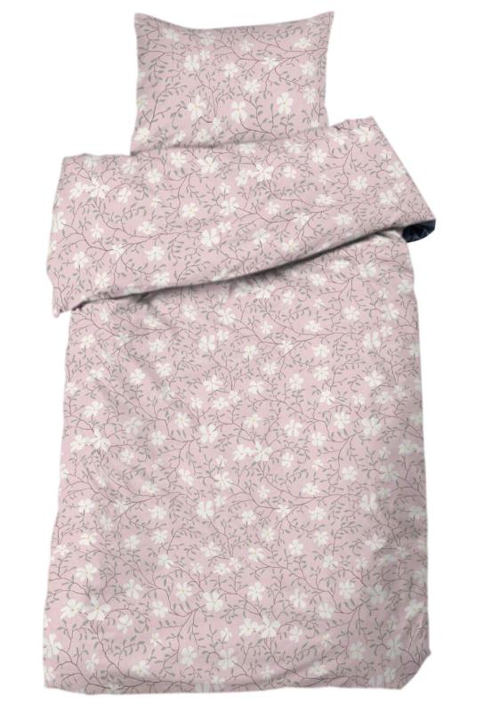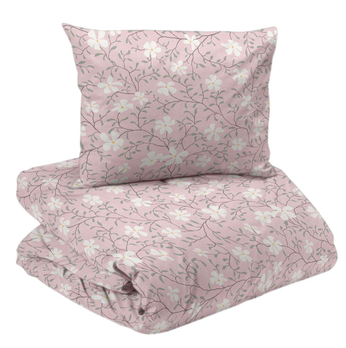 Bäddset HEDVIG med rosaprickig bottenfärg och vita skira blommor och smala blad