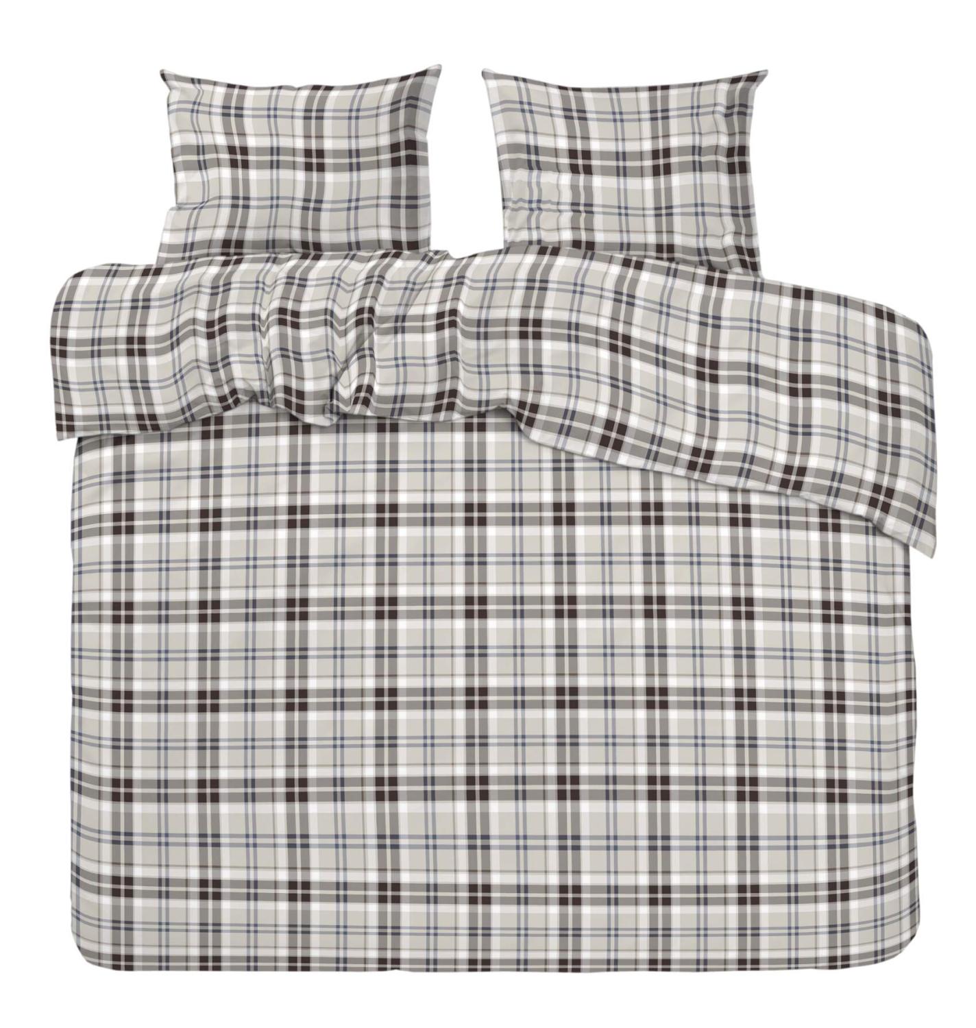 Bäddset KINGSIZE TRYSIL i flanell. Rutig i beige och blått