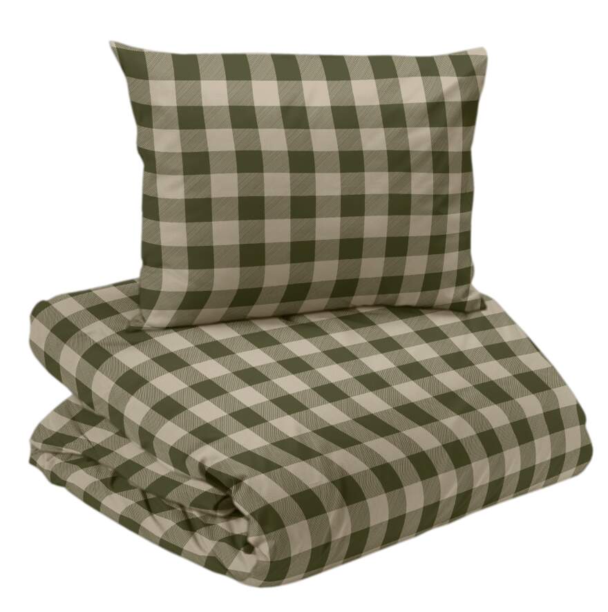 Bäddset LIVIGNO i rutig flanell i grönt och beige