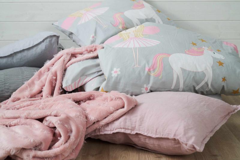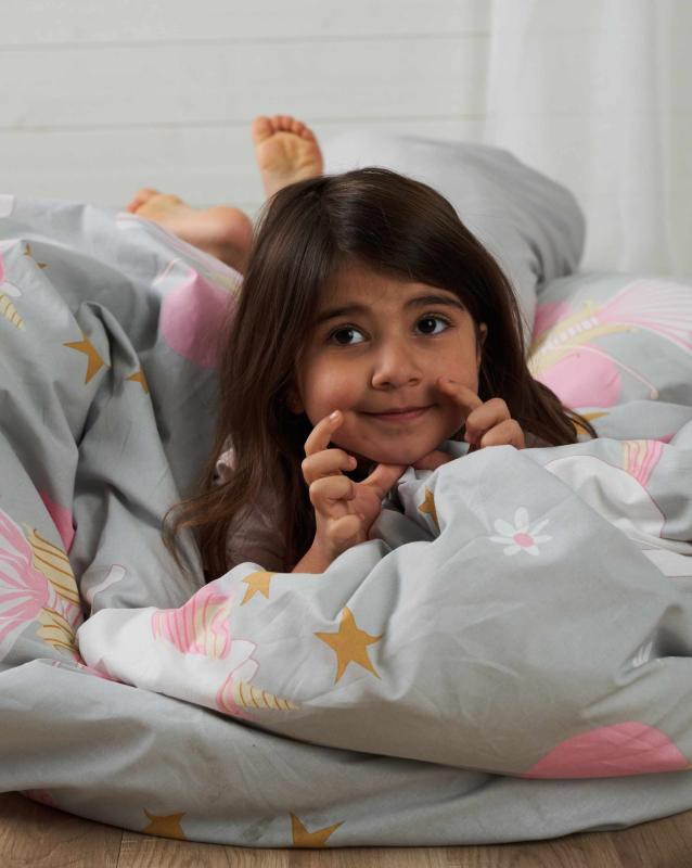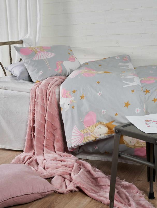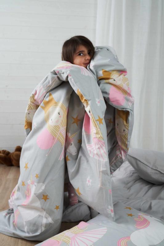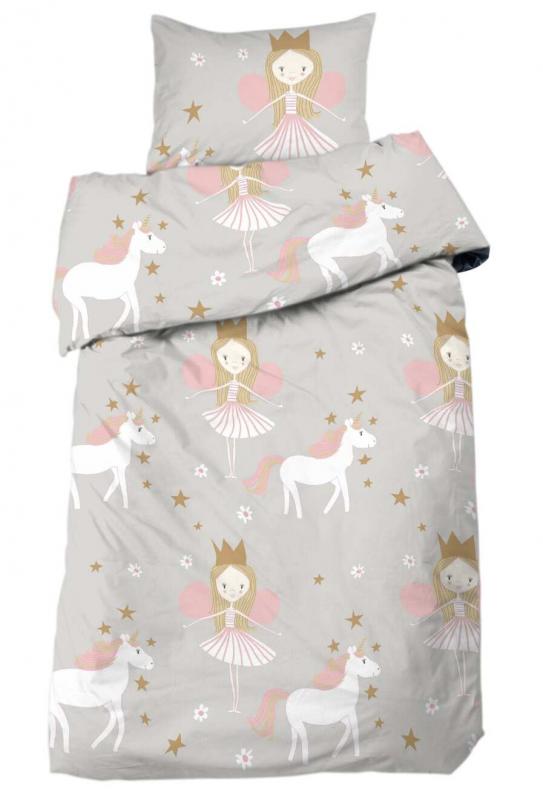 Bäddset NELLIE 2-dels prinsessor & enhörningar, grå