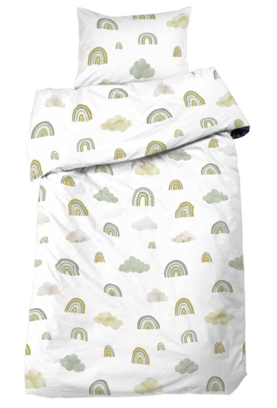Bäddset RAINBOWS med regnbågar och moln i grönt