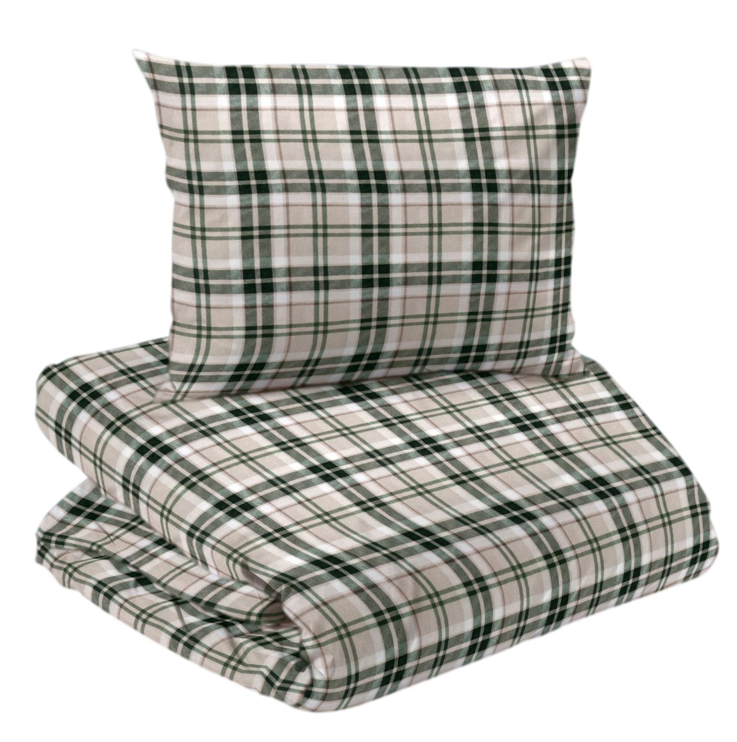 Bäddset TRYSIL i flanell. Rutig i beige och grönt