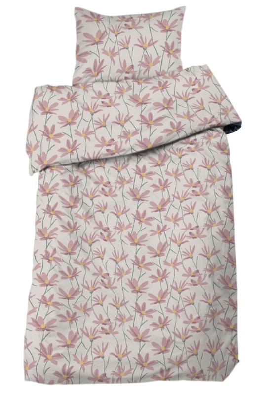 Bäddset Ylva, 2-dels med blommor Stl.150x210, 50x60 cm, Linne, rosa