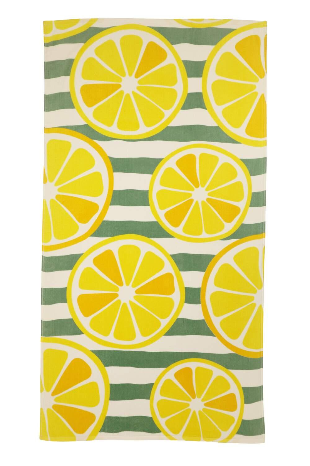 Stl. 80x160 cm, Beachhandduk i velour med härliga citroner som passar perfekt för stranden, vikt 380 gsm.