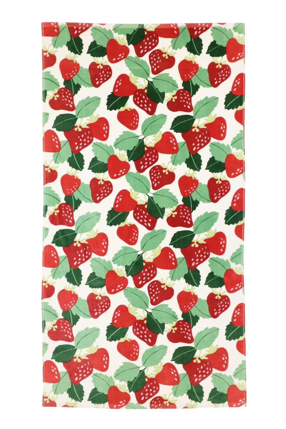 Stl. 80x160 cm, Beachhandduk i velour med härliga jordgubbar som passar perfekt för stranden, vikt 380 gsm.