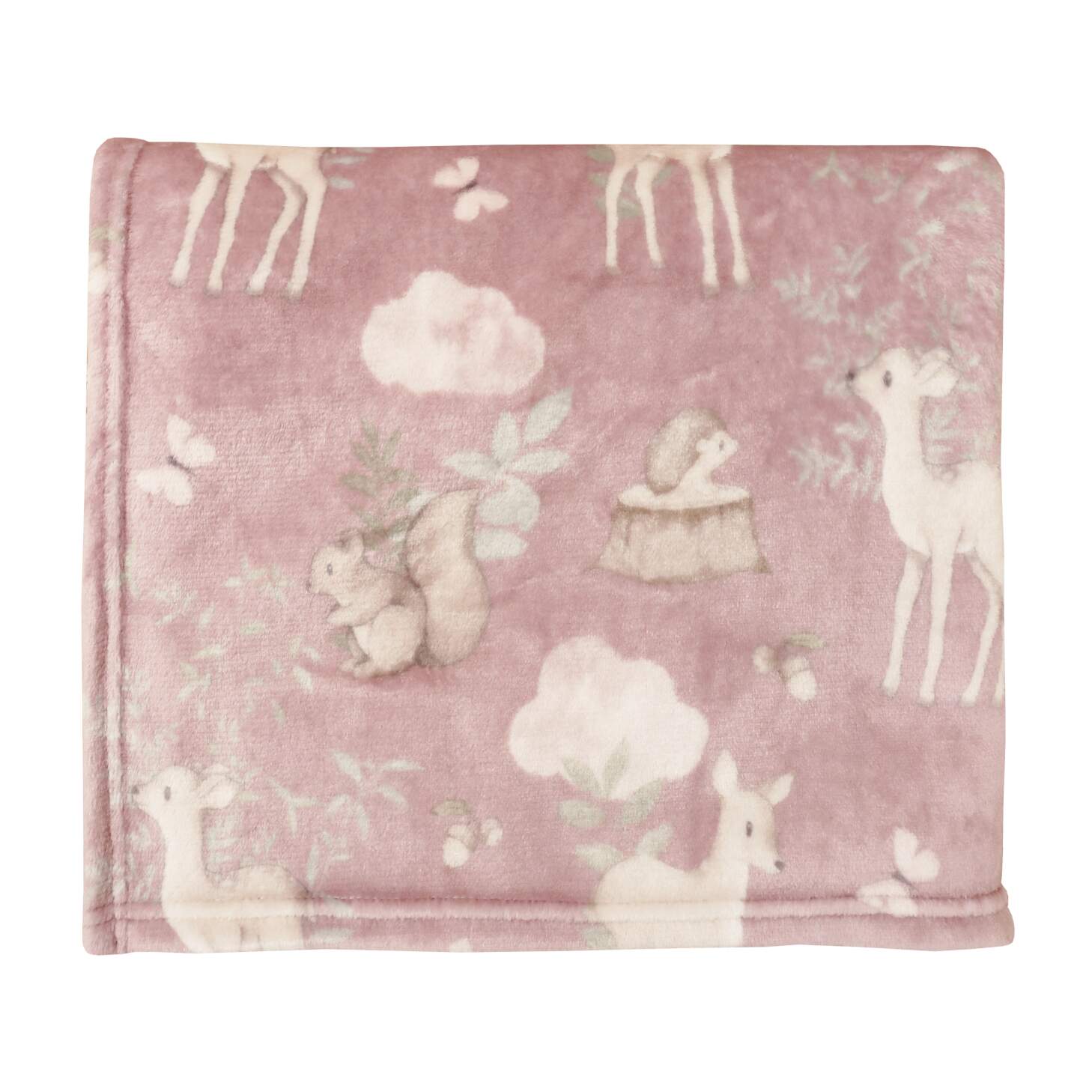 Barnpläd, barnfilt BAMBI med söta djur i rosa