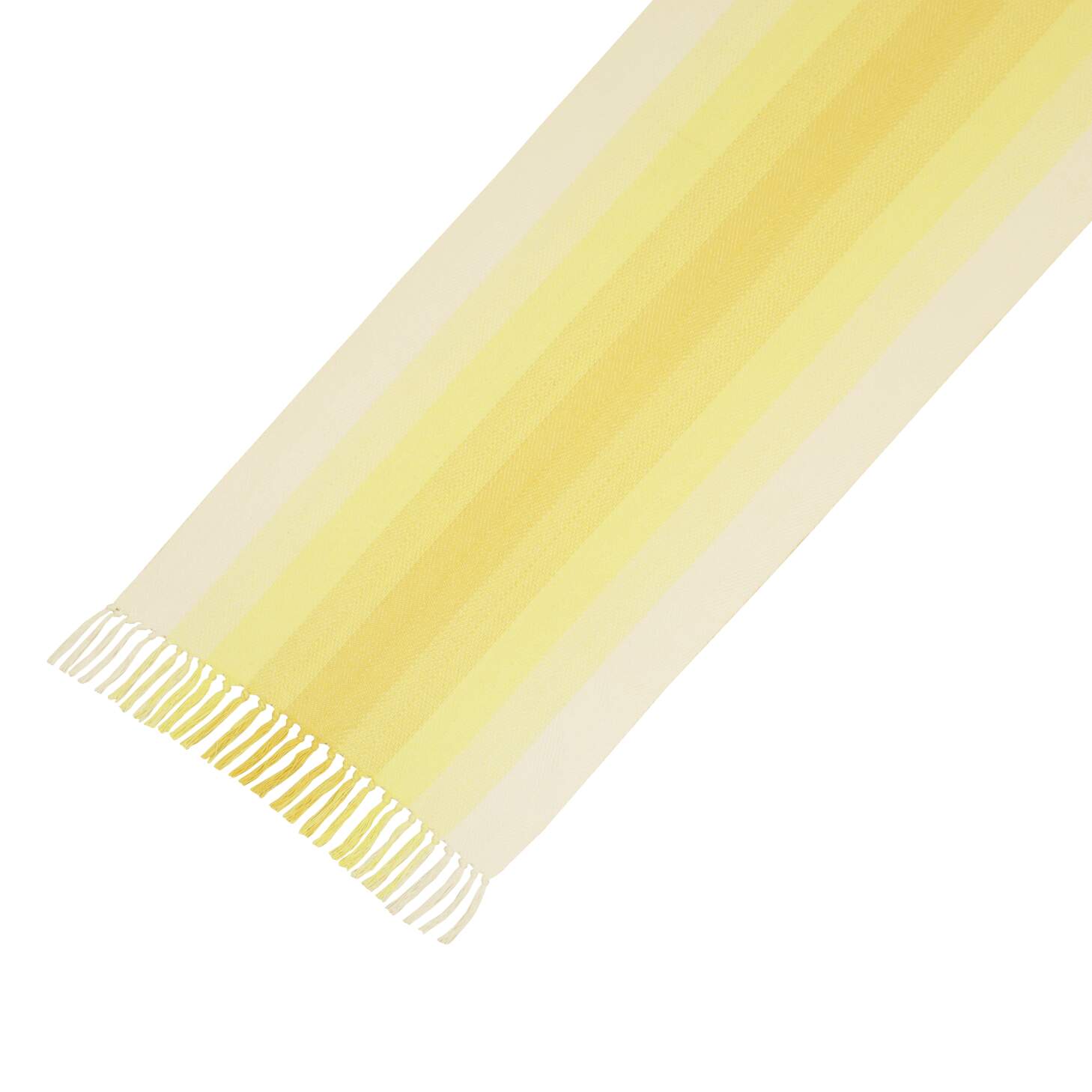 Bordslöpare HILMA med ränder som tonar ut från gult till vitt. Frans i kortsidorna.