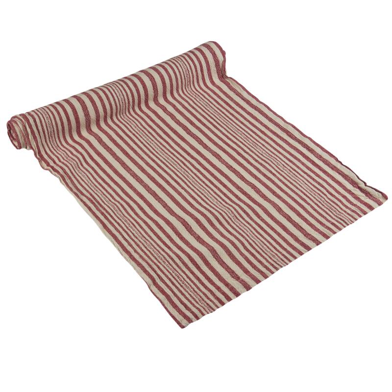 Bordslöpare KARIN, garnvävd, smalrandig i rött, enzymtvättad