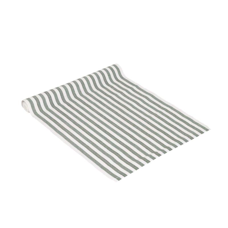 Bordslöpare NINA, randig i offwhite och äppelgrön, stl.35x120cm