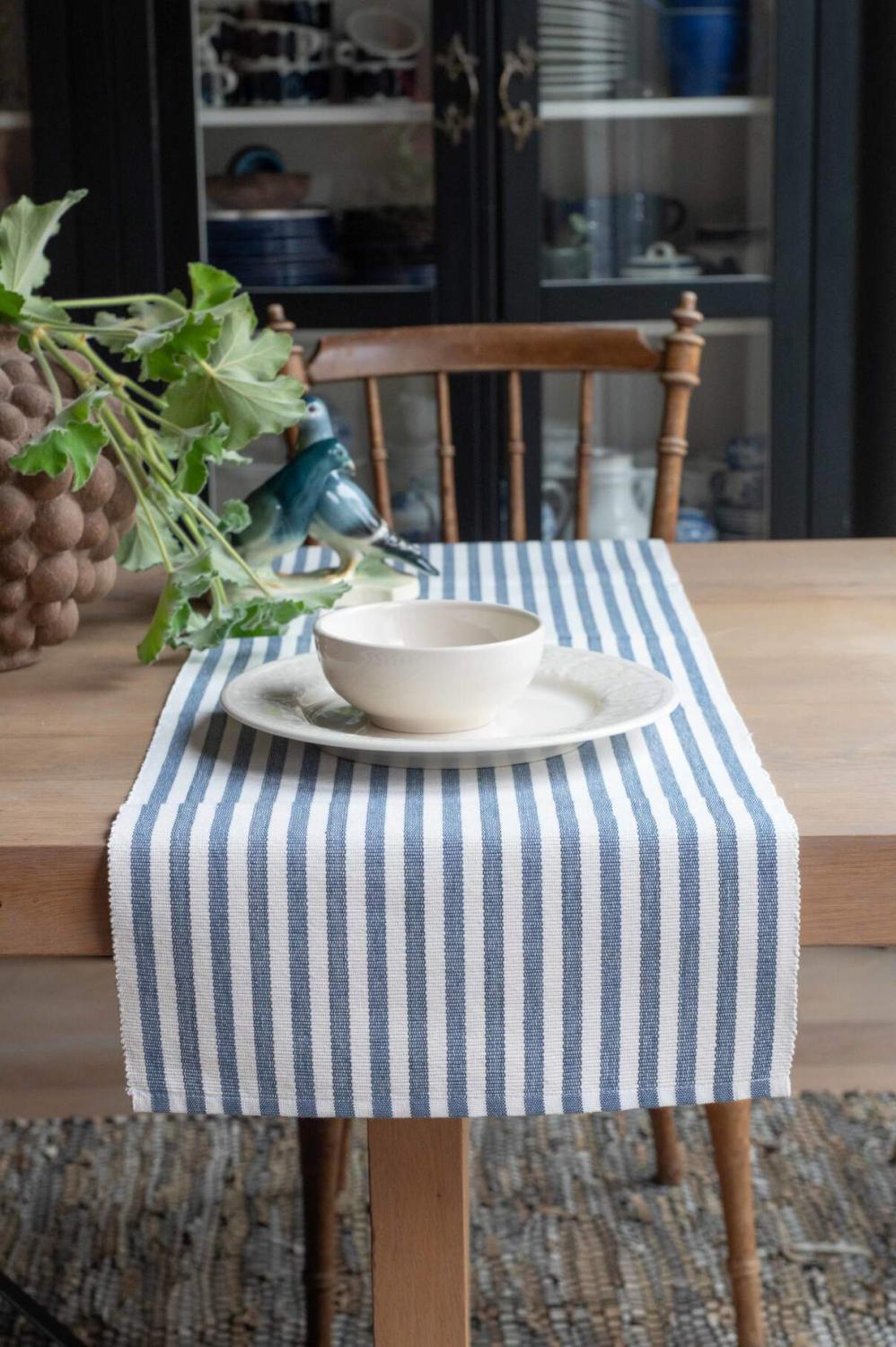 Stl. 40X140CM. Bordslöpare NINA randig i garnfärgat bomullstyg med ränder på 1 cm. Den karakteristiska ripstrukturen ger duken en vacker textur