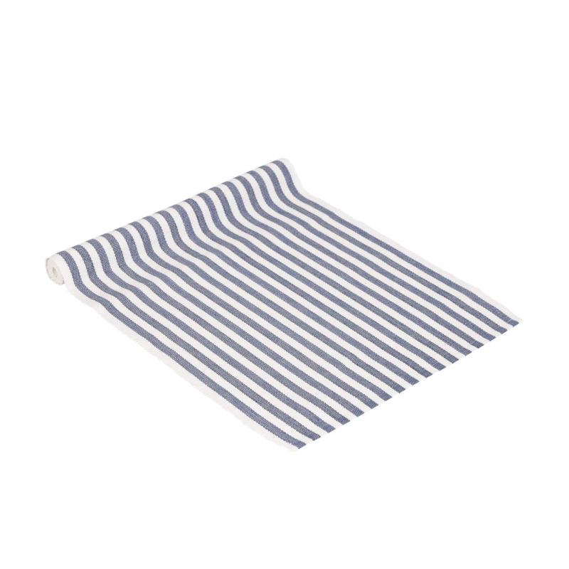 Bordslöpare NINA, randig i offwhite och denimblått, stl.40x140cm