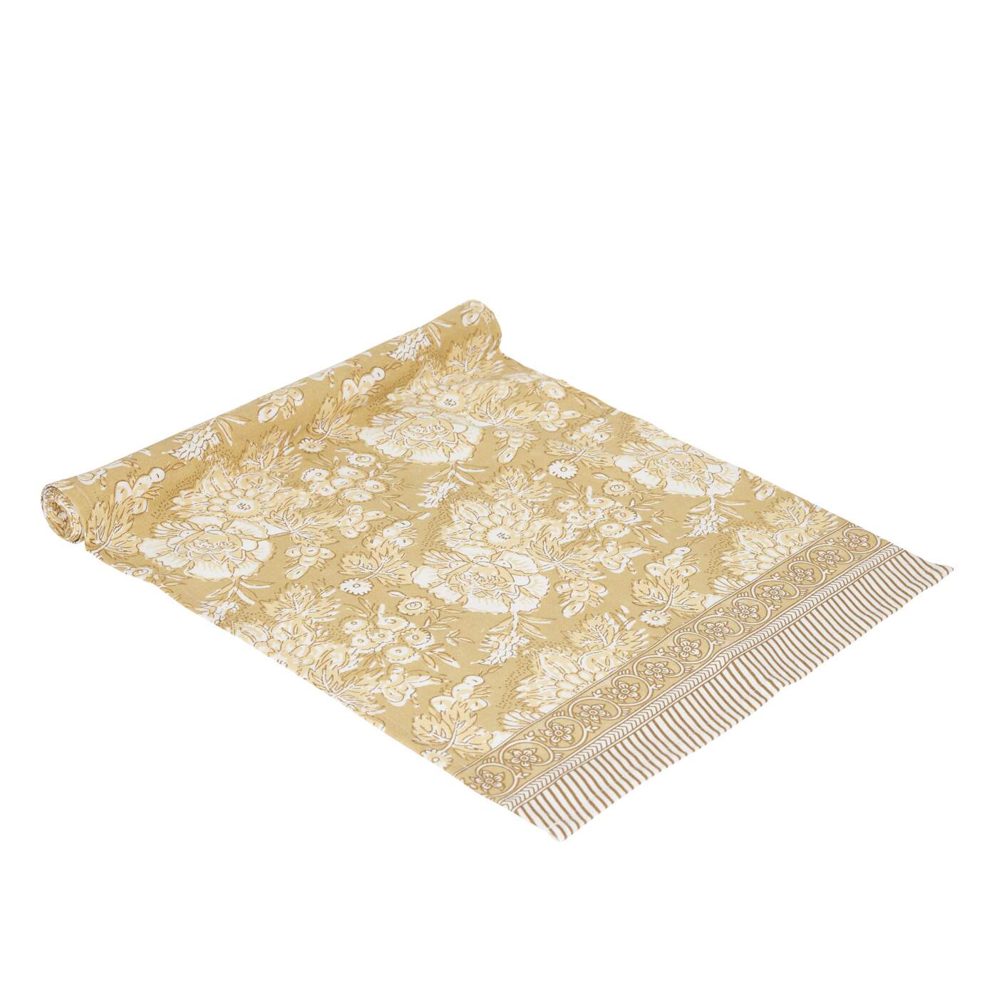Bordslöpare SONIA, blommig och bård i kortsidorna, gul bottenfärg