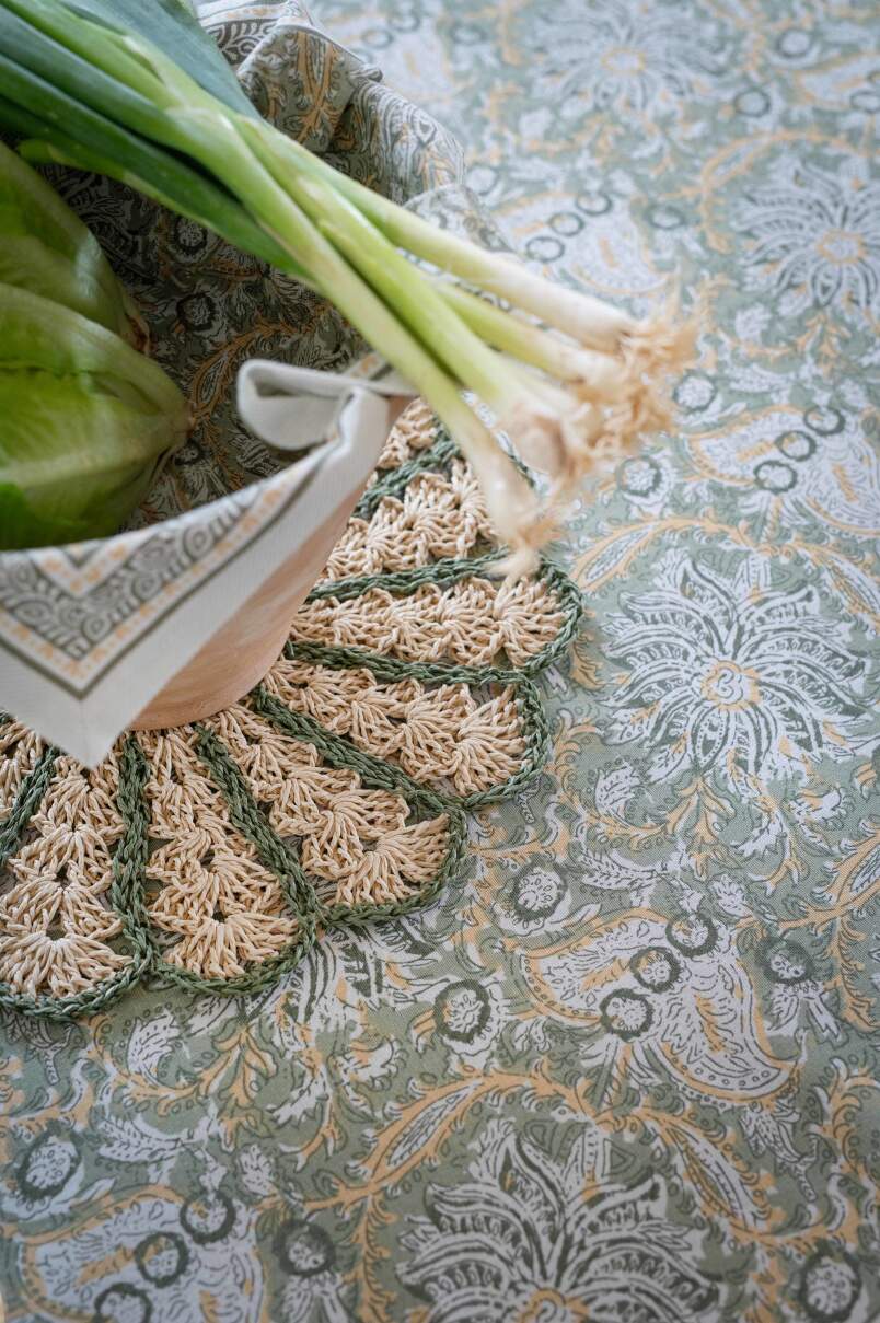 Passar lika bra till festliga tillfällen som till vardagens måltider. Bordstabletten går lika bra att använda som en liten duk.
