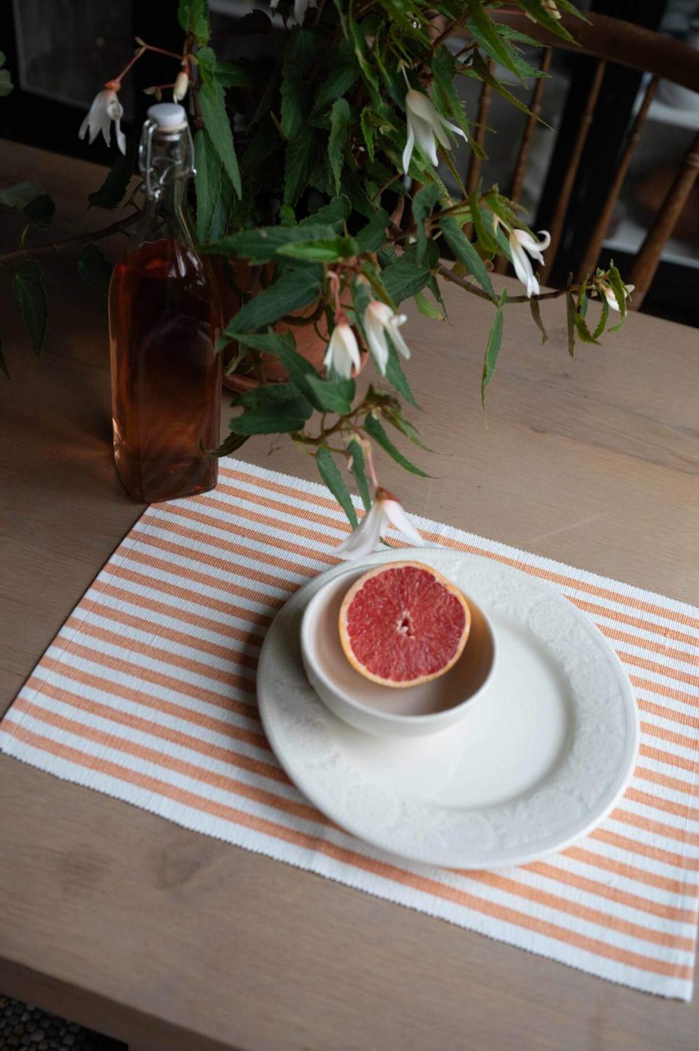 Bordstablett, tallriksunderlägg NINA, randig i offwhite och apelsinfärg