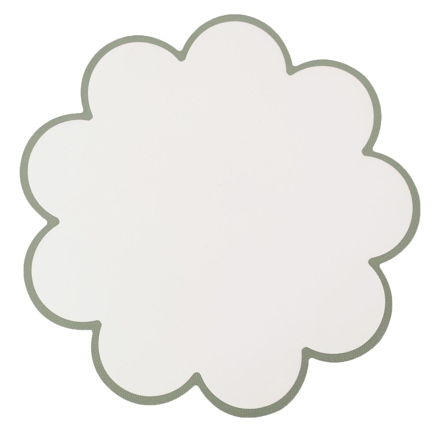 Bordstablett, tallriksunderlägg VANJA i vit läder imitation med grön bågad kant