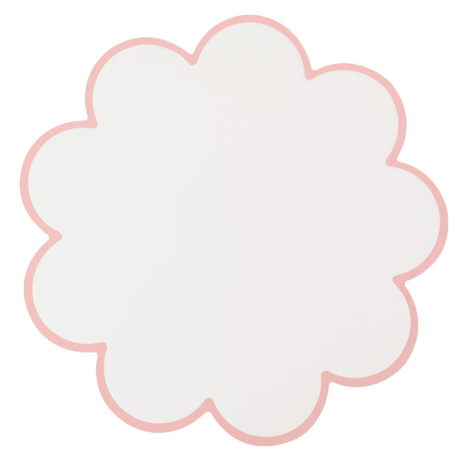 Bordstablett, tallriksunderlägg VANJA i vit läder imitation med rosa bågad kant
