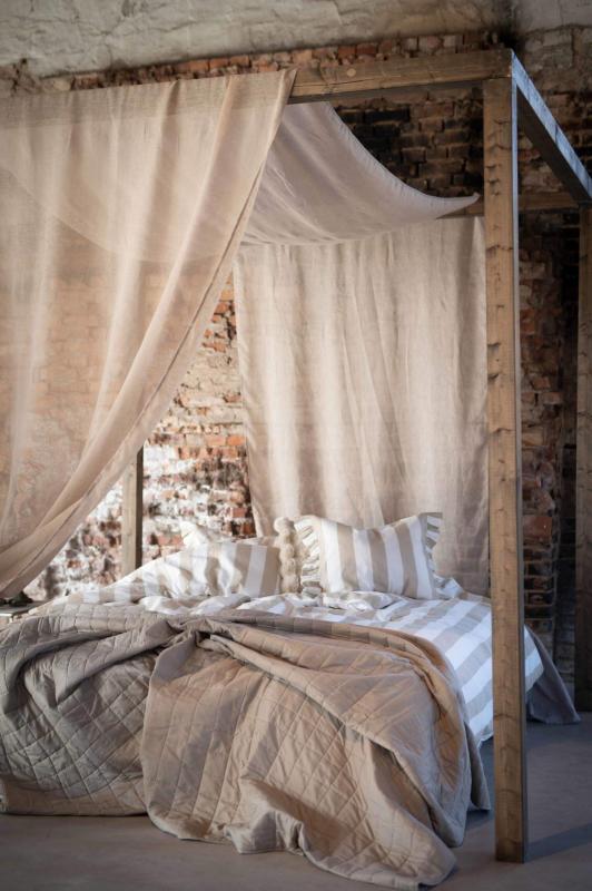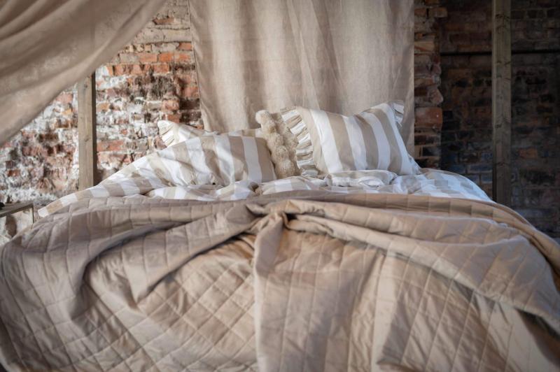 Dubbelöverkast KEVIN med quiltat rutmönster i greige