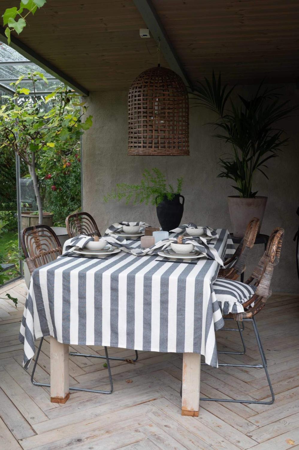 Stl. 140X300 CM. Extra lång duk AMALIA i fin blockrand, tillverkad av återvunna material, passar både vardagsmiddagar och festliga tillställningar.