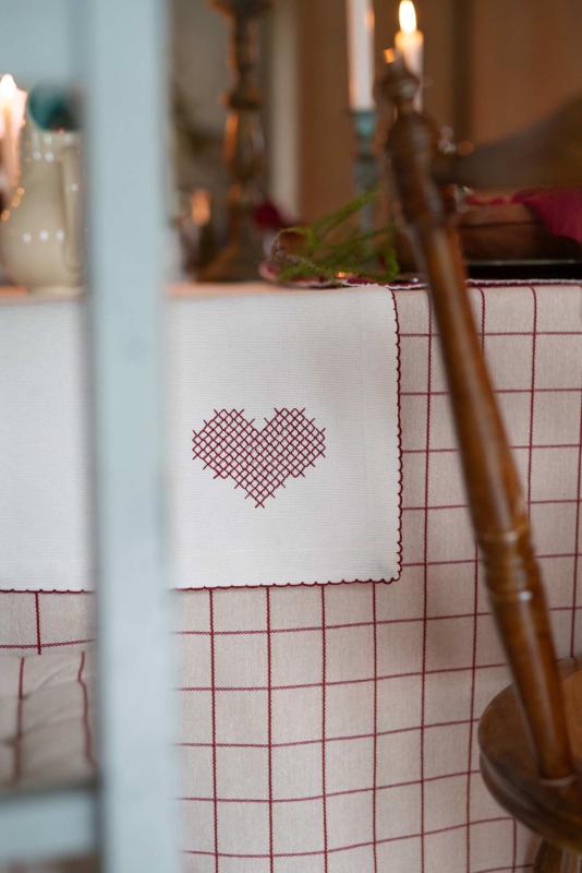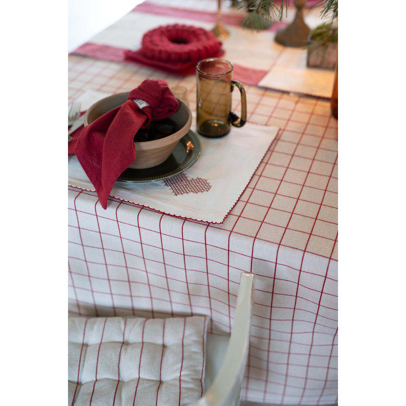 Duk Axel stor, i återvunnet material med vävda rutor i röd och beige