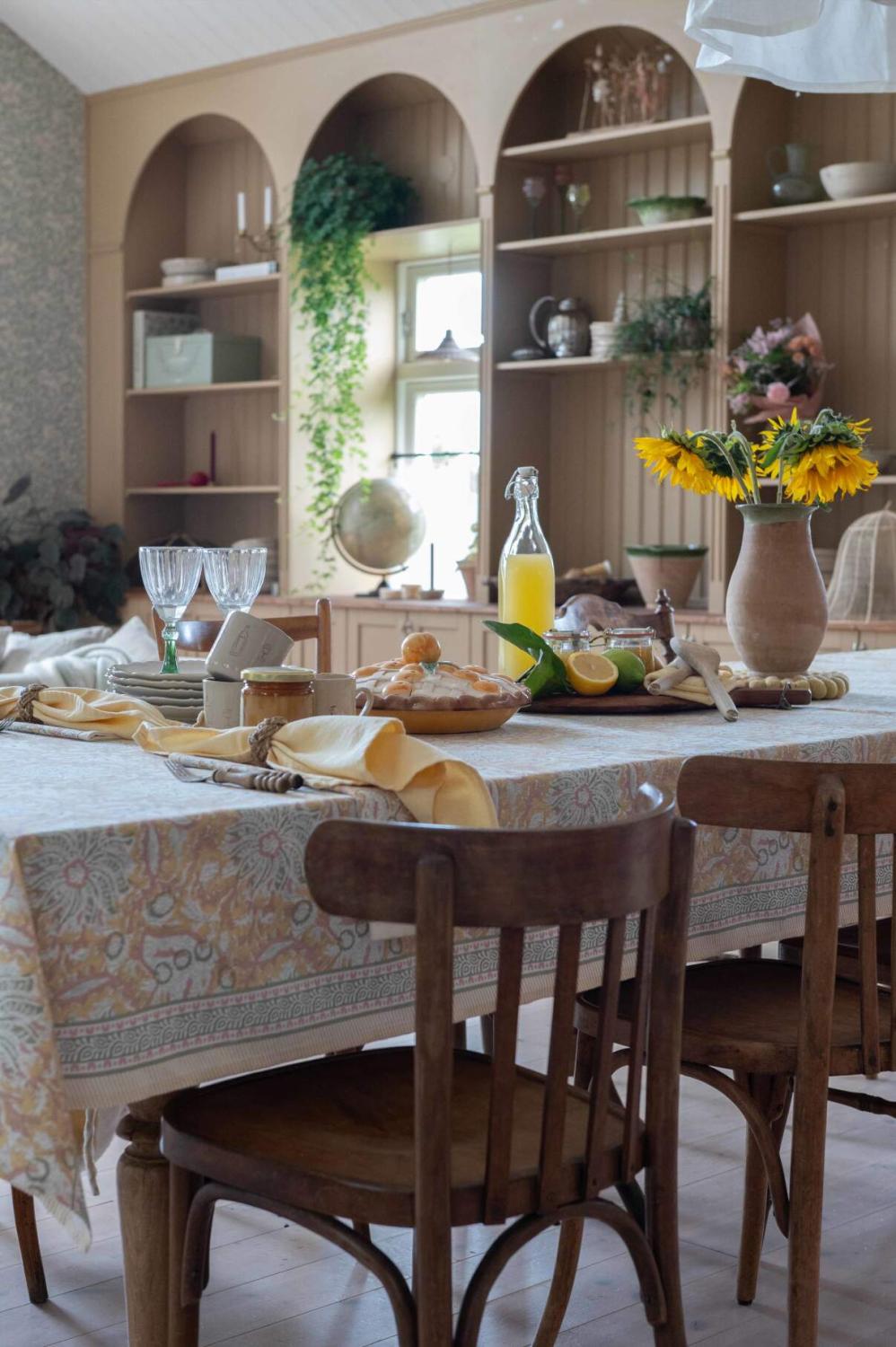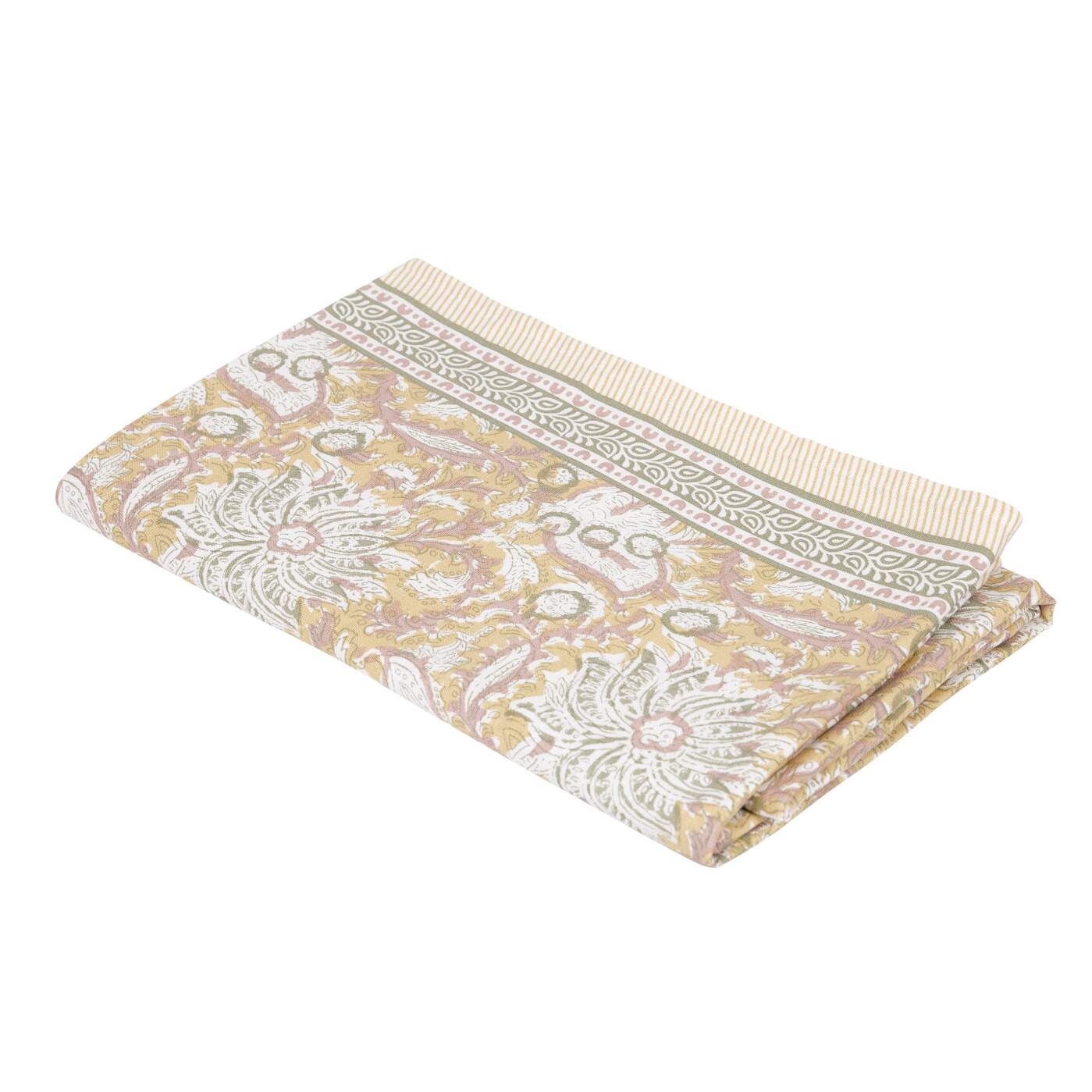 Duk DANTE blommig i gult med bård utmed med långsidorna