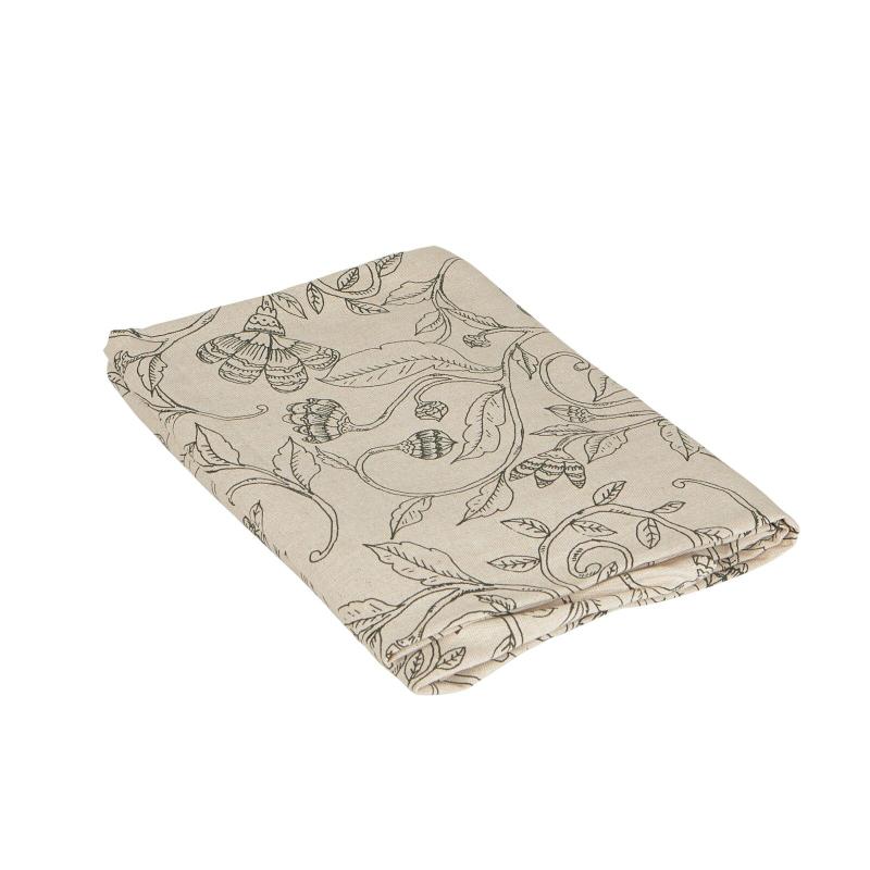 Duk ELLIE med ett snirklande fantasifullt bladmönster i grönt på beige botten