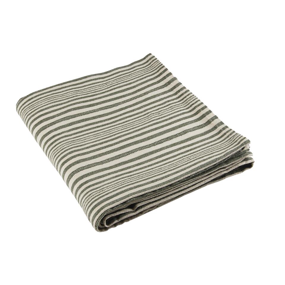 Duk KARIN, garnvävd, smalrandig i grönt, enzymtvättad