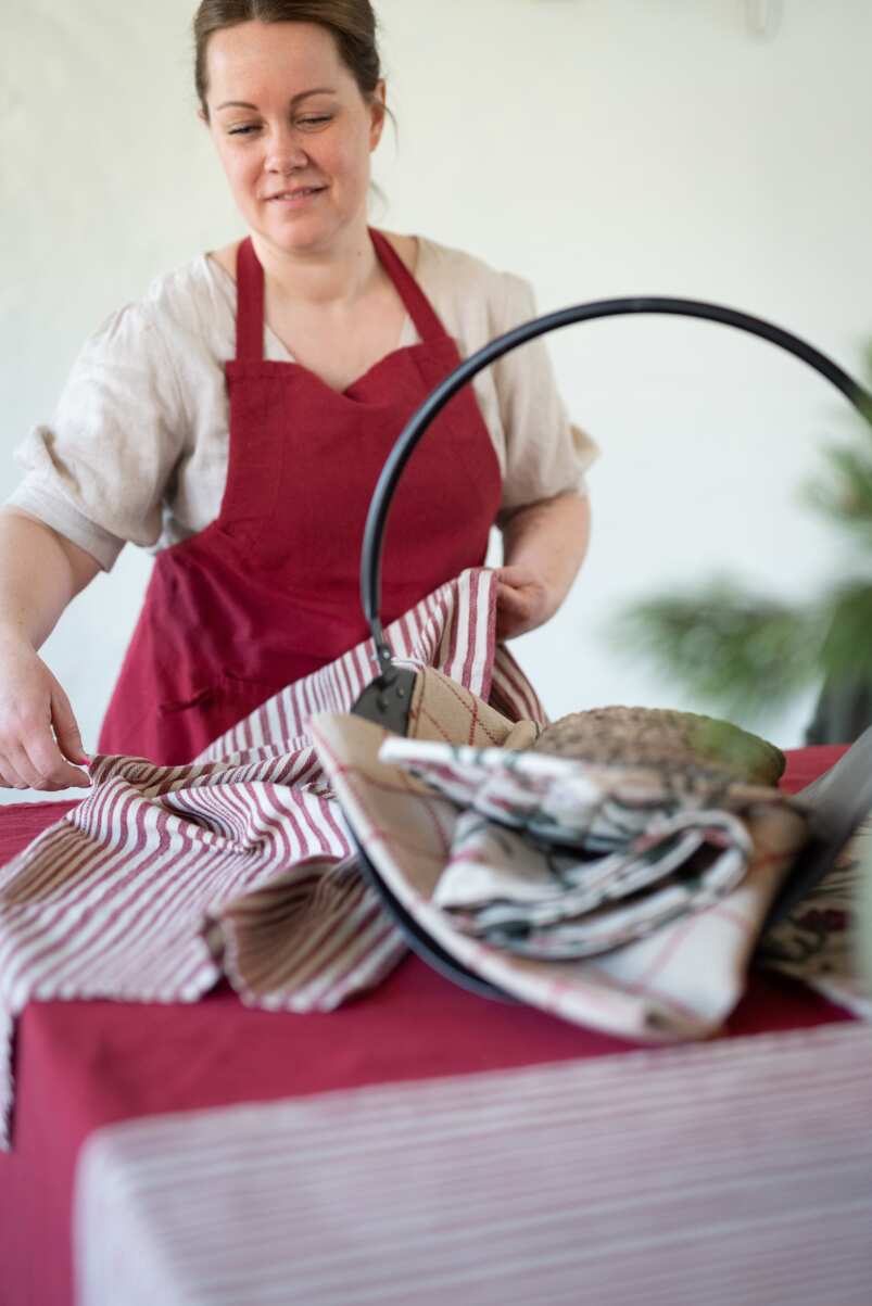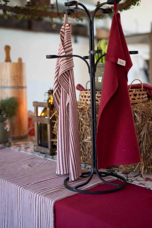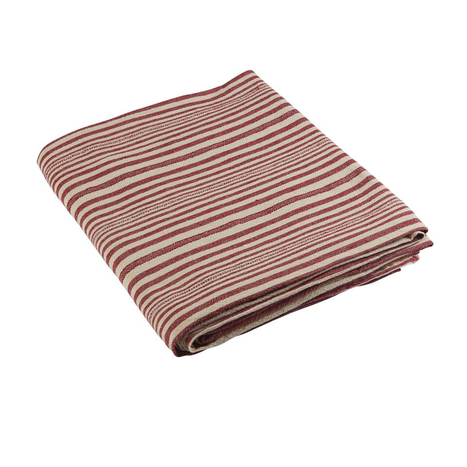 Duk KARIN, garnvävd, smalrandig i rött, enzymtvättad