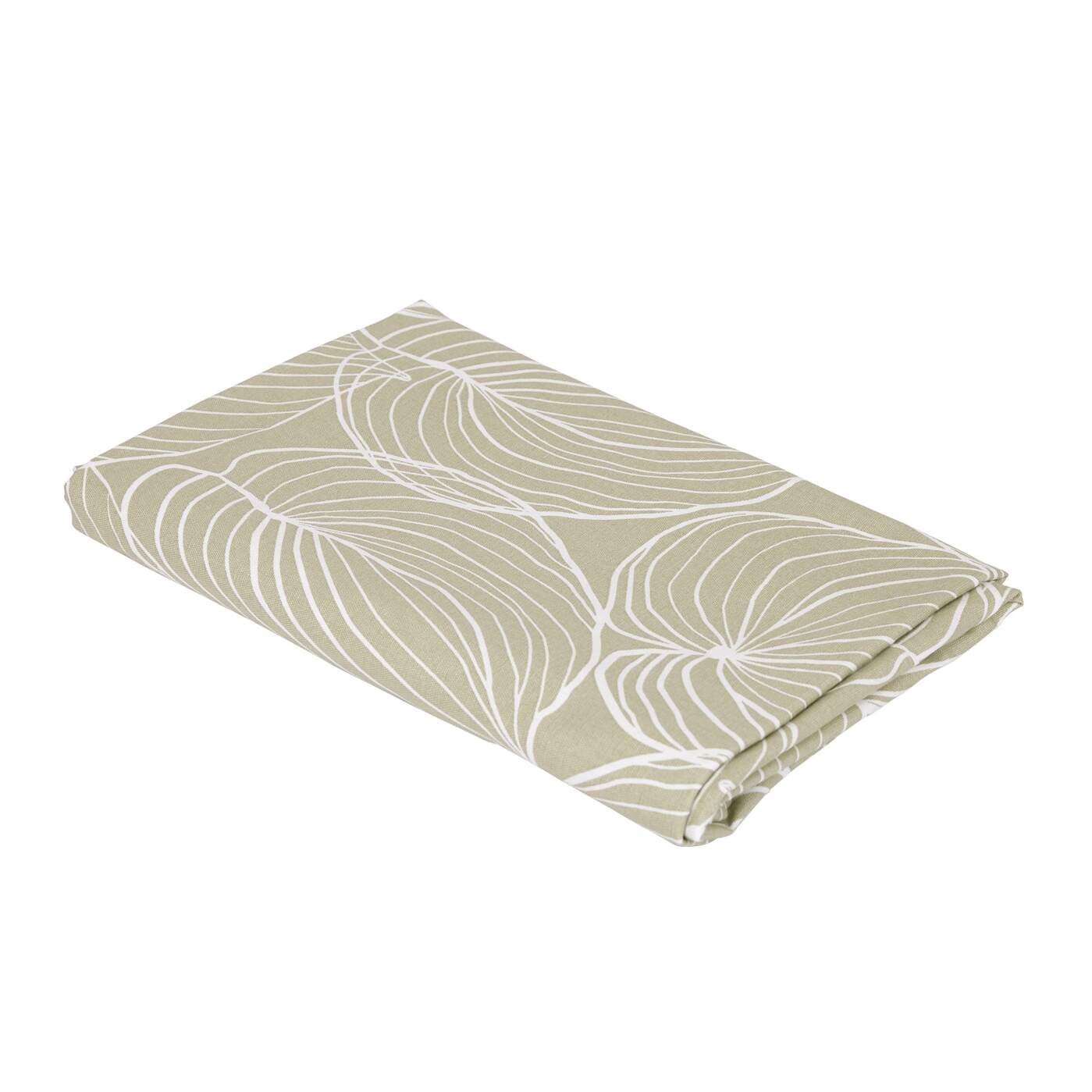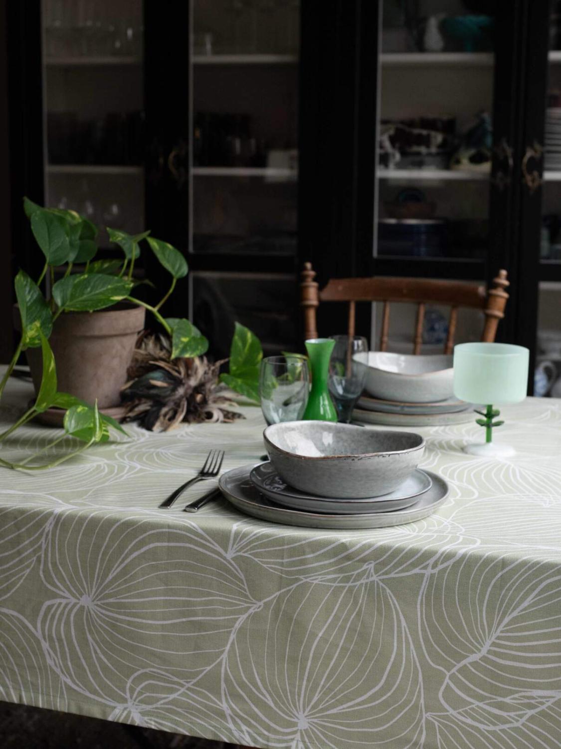 Duk TILDA med vita ritade blad på ljusgrön bottenfärg